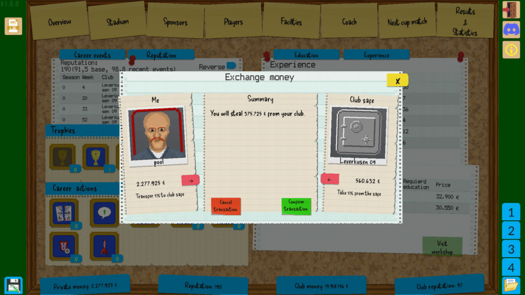 - coach management: take workshops or education with quizzes to unlock special gameplay features and skills, choose your own path, apply for jobs at other clubs, and become a national coach