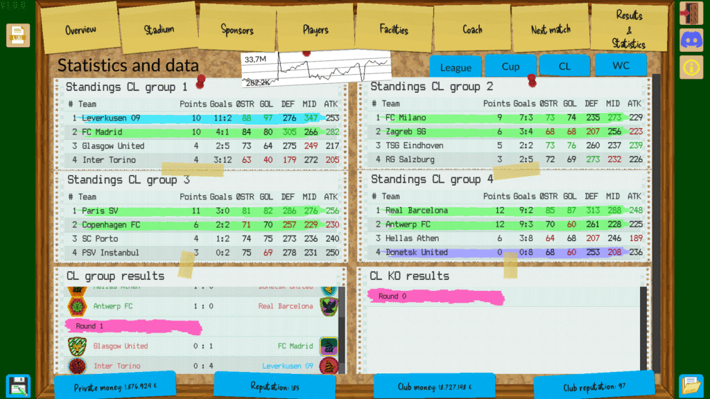 Boeckham’s Football Manager is an old-school management game in which you are in charge of a soccer team. To be successful, you need to manage your players, buy some cheap and sell some with profit, and care for them when they get into trouble. Build your stadium and expand the facilities. Negotiate with sponsors to finance all of the above.